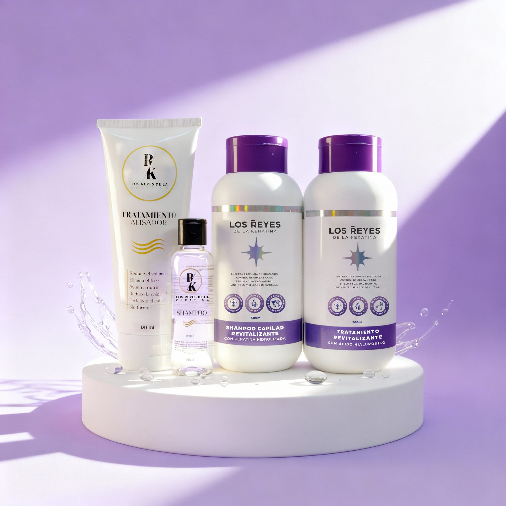 🧴 CONTENIDO: Keratina de 120 ml + Shampoo Antiresiduos Limpieza profunda (Primer paso) de 30 ml + Shampoo Revitalizante con Keratina Hidrolizada 500 ml + Tratamiento Revitalizante con Ácido Hialurónico 500 ml
